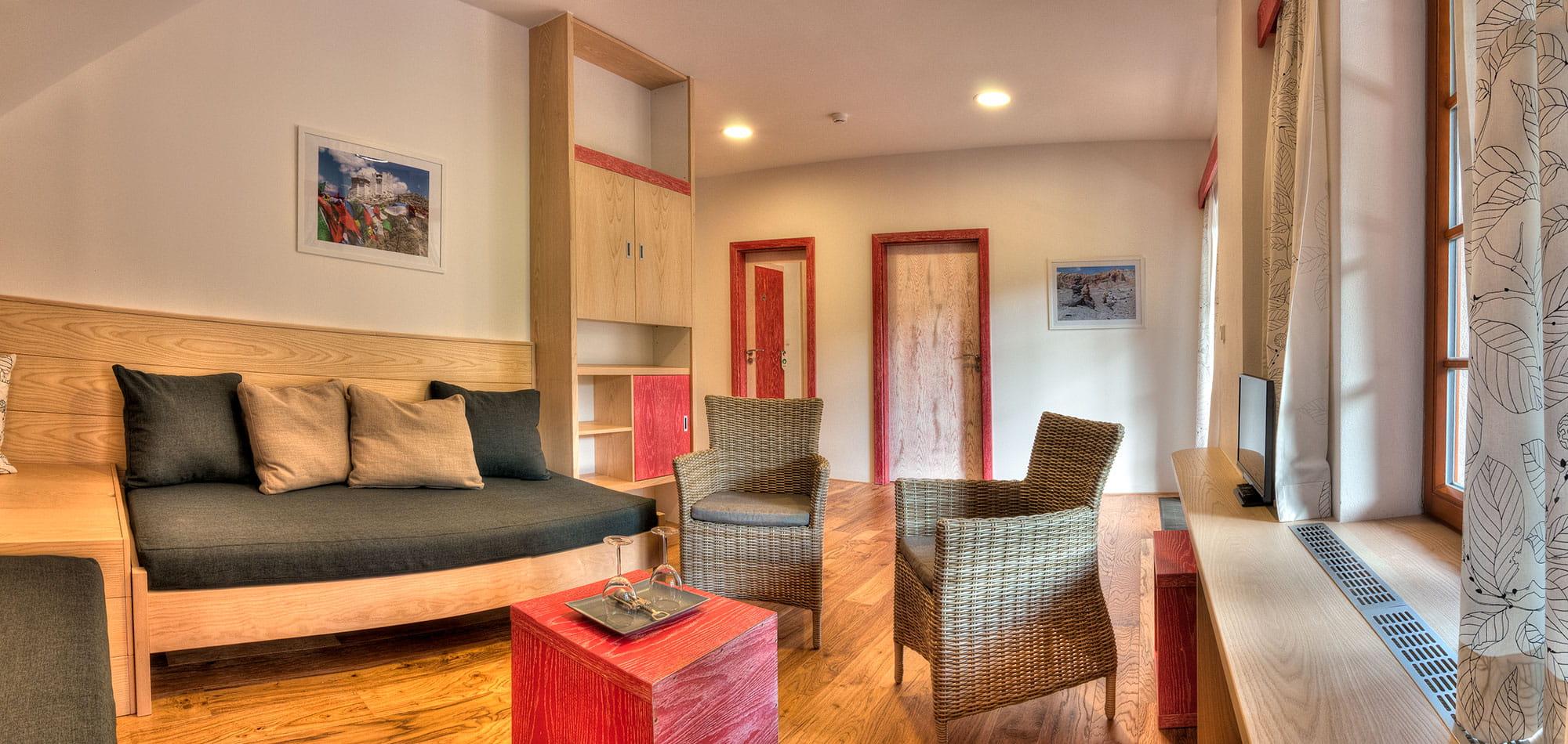 If you plan to come to stay with your family or a bunch of friends, our family studio is just what the doctor ordered. Two separate rooms and a cloakroom will give you plenty of space to enjoy your time here. Suite is equipped with bathroom, TV, mini-fridge and minibar.
