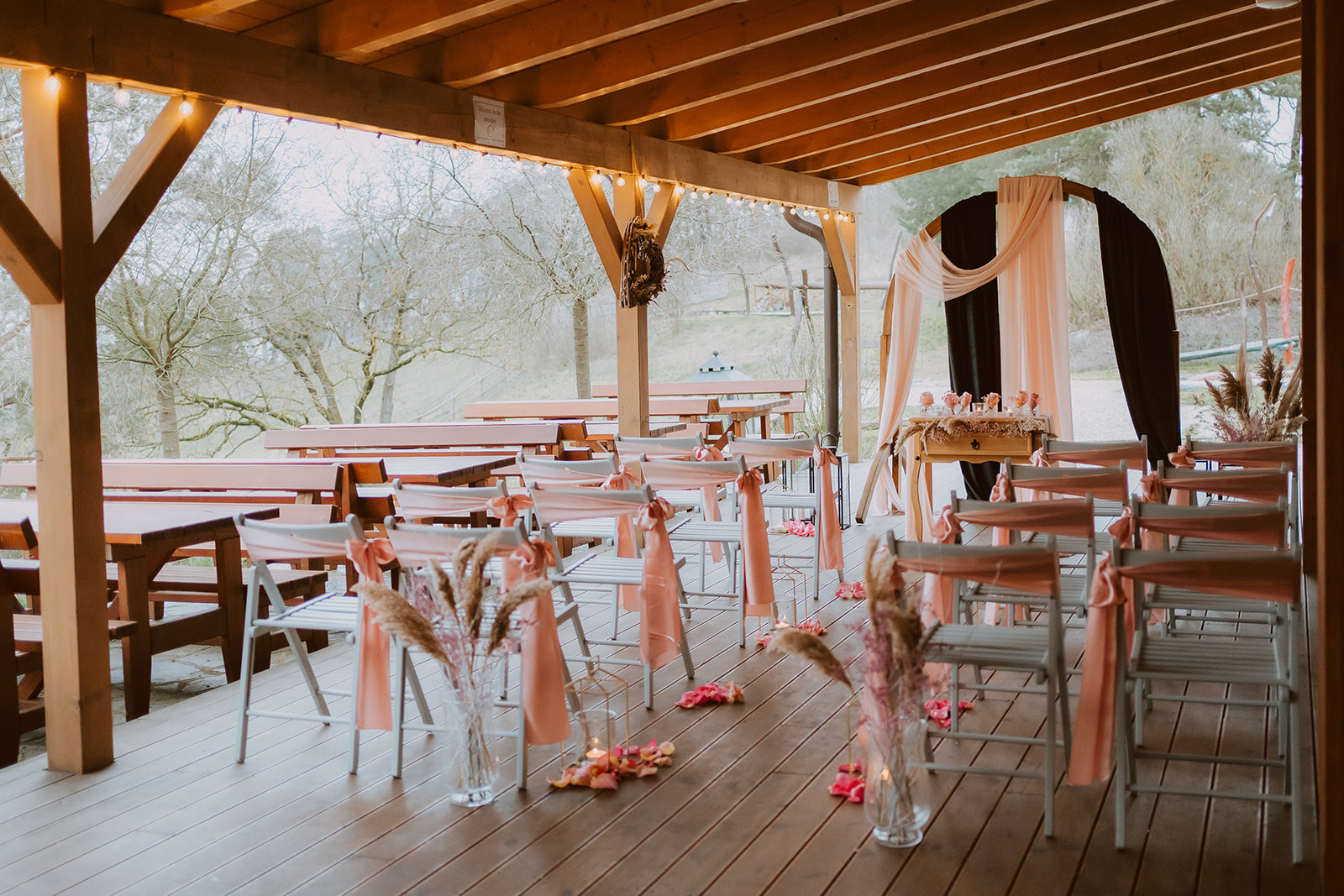 V první části dne budou probíhat prohlídky statku a jeho prostor pod vedením naší zkušené event manažerky Báry, která vám ráda ukáže prostory a zodpoví všechny dotazy ohledně svatební organizace.