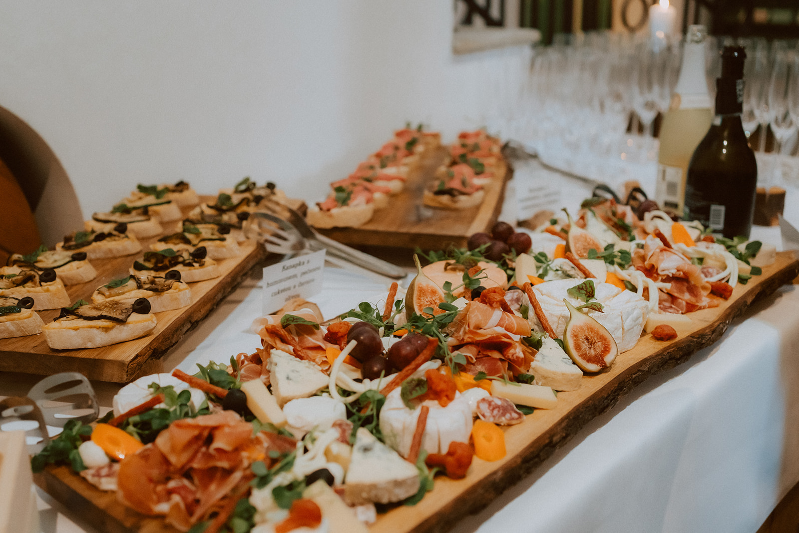 Po celý den můžete ochutnat pochoutky ze svatebního rautu formou flying bufetu, ochutnat skvělé dezerty ze sweet baru a také skvělá vína prezentovaná sommeliérkou.